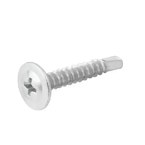 Utilize parafusadeira com ponta philips, posicione o parafuso sobre a chapa metálica, pressione e gire até a fixação total, mantendo contato pleno da cabeça flangeada.
